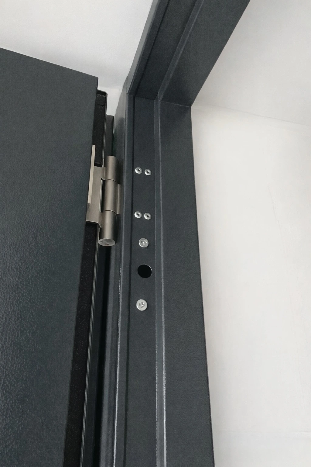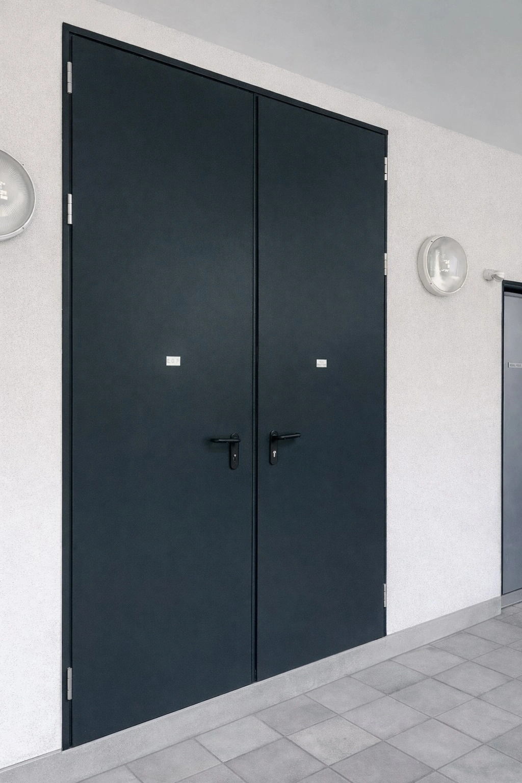 Porte métallique professionnelle en acier, conçue pour les projets tertiaires et industriels. - Finition RAL 7016 Gamme B1 Texturé Mat BLOC PORTE MÉTALLIQUE Intérieur 1 vantail EI60 - coupe feu 1 heure - Vantail type caisson avec ...