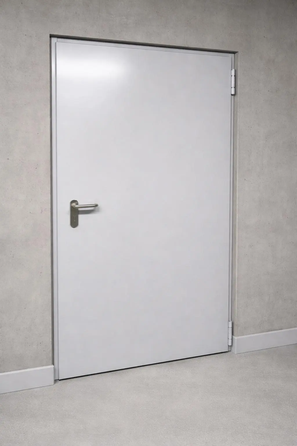 Porte métallique robuste et durable pour usage professionnel. BLOC PORTE MÉTALLIQUE EXTÉRIEUR 1V EI30 990 x 2050 RAL 7038 - Finition RAL 7038 Gamme B1 Texturé Mat- Épaisseur 63 mm - Porte coupe feu 30 minutes - Bâti tubulaire, tôl...